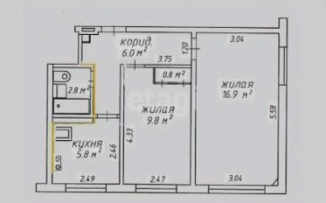 45,3 м², 2-комн., 4/5 этаж