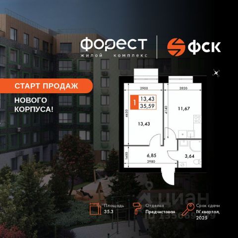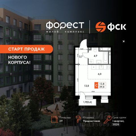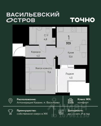 Год постройки 2020 Продам 1-комнатную квартиру до 7 млн. рублей в республике Татарстан.