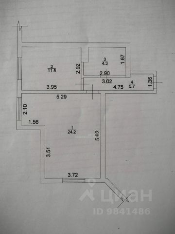 Общая площадь — 52,5 м²