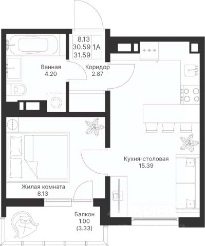 Продается студия в ЖК СТАНЦИЯ СПОРТИВНАЯ-2, Дом Чемпионов.