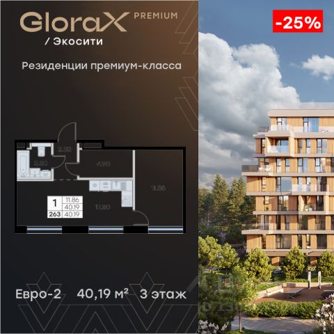 Продается 1-комн. квартира на 3-м этаже в строящемся проекте премиум-класса GloraX Premium Экосити. Общая площадь лота составляет 40,19 кв. м, из которых 11,86 кв. м отведено под жилую и 17,30 кв. м под кухонную зону. Номер квартиры - 263 GloraX Premium Экосити это роскошь, вдохновленная природой. Преимущества, которые изменят вашу жизнь: • Собственная премиальная инфраструктура: Всё для комфорта и досуга, не выходя за территорию комплекса • Безопасность 24/7: Закрытая территория, видеонаблюдение, система "Умный дом" • Безбарьерная среда: Забота о каждом жителе, независимо от возраста и физических возможностей. • Изысканные дизайнерские холлы: Эстетика и комфорт с первых шагов в вашем доме. • Удобные колясочные в каждой секции: Больше пространства в вашей резиденции. • Квартиры в черновой отделке: Индивидуальные пространства для комфортной жизни. • Вдохновляющее благоустройство: Вдохнолвленные хвойным окружением: пешеходные и спортивные маршруты, детские площадки для разных возрастов, площадки для отдыха взрослых и зеленые кабинеты, озеро с плейхабом, теннисная площадка, площадка для мини-гольфа и многое другое всё для активной и насыщенной жизни. • Забота о будущем: Современные детский сад и школа с центром допольнительного образования рядом с кварталом. GloraX Premium Экосити это масштабный проект премиум-класса, созданный для тех, кто ценит комфорт, безопасность и качество жизни. Расположенный в Аракчино Кировского района, он гармонично сочетает в себе близость к природе и развитую инфраструктуру. Здесь каждый элемент создан для вашего удобства: от функциональных планировок до благоустроенной территории. GloraX Premium Экосити это пространство, где вы сможете наслаждаться каждым днем, зная, что сделали правильный выбор. GloraX Premium Экосити - это роскошь, вдохновленная природой. Цена указана при 100% оплате или стандартной ипотеке. Узнайте подробности в Отделе продаж.