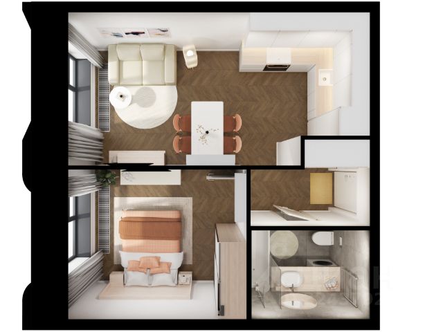 Квартира расположена на комфортном 4 этаже, с выдержаннои концепциеи умереннои национальности в современнои интерпретации.Общая площадь квартиры: 34,62кв.м. Жилая-13,76кв.м.