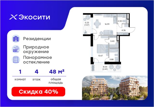Продается 1-комн. квартира на 4-м этаже в строящемся проекте Экосити. Общая площадь лота составляет 38,80 кв. м, из которых 12,27 кв. м отведено под жилую и 15,80 кв. м под кухонную зону. Номер квартиры - 183 Преимущества резиденции в квартале "Резиденции": - перегородки межкомнатные перегородки в 1 кирпич, в С/У в 2 кирпича с заведением гидроизоляции на 20 см - потолки - без отделки - полы в помещениях: жилые комнаты, гардеробная, коридор, прихожая, кухня - шумоизоляция пола, стяжка -полы во влажных помещениях - гидроизоляция, стяжка -водоснабжение -ввод ХВС, ГВС, канализации в ближайший СУ/в квартиру - электрический щит - временный, при входе в квартиру - отопление - горизонтальная разводка в полу с установкой - входная дверь - металлическая входная дверь с декоративной накладкой - На территории Урбан-квартала предусмотрено строительство детского сада на 360 мест, школы на 1501 место, детский развивающий центр на 2000 мест. - Рядом с с кварталом Резиденции запланировано строительство детского сада на 360 мест, школы с детским развивающим центром на 1501 место - На первых этажах домов Урбан-квартала запроектированы коммерческие помещения - предусмотрены места для супермаркетов, бытовых услуг, кафе. - Собственный комьюнити-центр для жителей Урбан-квартала - Клуб Резидентов для жителей квартала Резиденции - бульвар "Река между камней" с плейхабом для детей, амфитеатром, спортивными зонами, аллеей достижений. Всем посетителям будет доступен иммерсивный маршрут и AR-игры. - Тайная тропа вдоль которой расположатся зоны тихого отдыха, йоги и медитаций - 2 смотровые площадки - Снейк-ран - Круговой спортивный маршрут - Специальные зоны для выгула собак - В Урбан-квартале предусмотрено строительство 2 многоэтажных паркингов на 300 и 360 машиномест. Всем жителям проекта доступен и привычный плоскостной паркинг вокруг территории проекта с возможностью в приложении дома получить информацию о наличии парковочных мест. - В квартале Резиденции предусмотрен подземный паркинг на 260 машиномест Экосити — это совершенство города в первозданной природе. Наполненный возможностями квартал, в котором вы не выбираете между городом или природой, семьей или работой, отдыхом или спортом, — вы берете всё сразу. Каждая семья, каким бы составом она ни жила, найдет для себя идеальное пространство. Планировочные решения разнообразны, также как и возможности отделки от черновой до полностью с ремонтом. Здесь запроектированы квартиры с просторной кухней-гостиной, чтобы семья могла комфортно проводить время вместе. Резиденции сдаются в черновой отделке, вы могли реализовать ваши самые смелые дизайнерские решения. Каждая резиденция это база, на которой можно выстроить свой личный стиль. Цена указана при 100% оплате или стандартной ипотеке. Узнайте подробности в Отделе продаж.