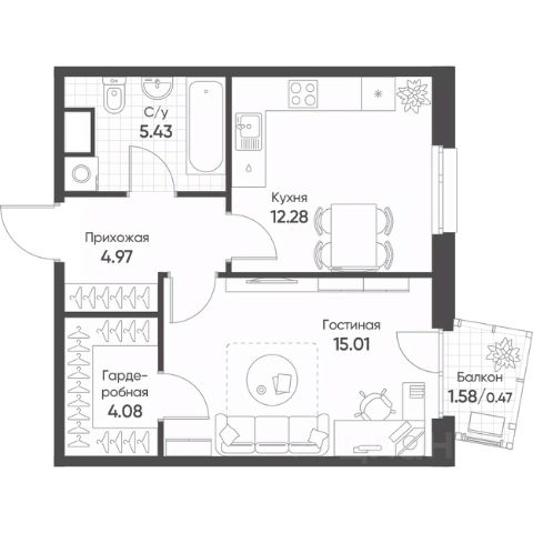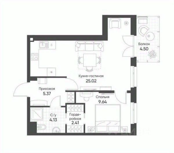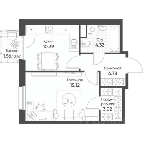 Предлагаем к продаже 1 комнатную квартиру в новом ЖК "Уно".