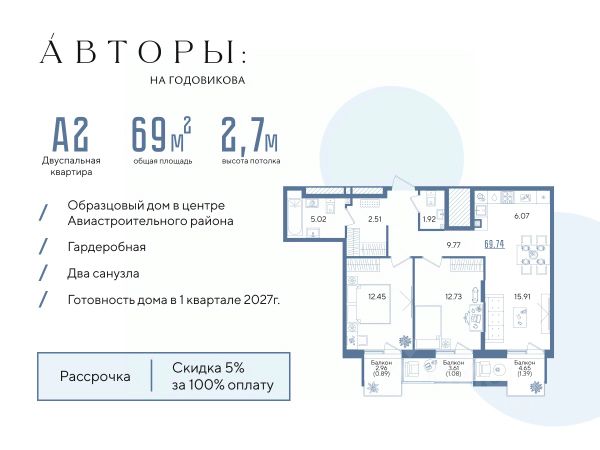 Вы можете приобрести эту квартиру в ипотеку со ставкой от 6% (семейная ипотека). Подробнее - звоните! Продается 1-к квартира 122 в образцовом доме "Авторы на Годовикова" в центре Авиастроительного района. Квартира на 7 этаже площадью 58.32 м², кухней-гостиной и высотой потолков 2.7 м. Квартира сдается в предчистовой отделке со стяжкой полов, предоставляя полную свободу для ваших предпочтений в дизайне. Срок сдачи дома — 1-й квартал 2027 года. Возможно приобретение со скидкой 5% при полной оплате, в рассрочку с первым взносом 30%, а также оформление стандартной ипотеки по интересным условиям. Образцовый дом "Авторы на Годовикова" расположен в тихой зоне, удаленной от активной дороги — на второй линии от улицы Максимова. Соседство с невысокими частными домами открывает превосходный вид из квартиры. Для прогулок на свежем воздухе в шаговой доступности Караваевский парк и парк "Крылья Советов". В соответствии с современными стандартами комфорт-класса "Авторы" предлагают особые решения для вашего комфорта: • Современная архитектура. • Закрытый двор без машин. • Дизайнерские холлы с зонами ожидания и детской комнатой. • Подземный паркинг. • Зона для хвостатых. Двор в концепции траектории полета создает единую линию движения. На территории дома есть многофункциональная зона для йоги и настольных игр, детская зона для комфортных прогулок юных жителей, многофункциональная спортивная площадка со скалолазанием и площадка для выгула собак. Обильное озеленение из 25 видов растений и несколько игровых зон для юных жителей разных возратов: для детей до 3-х лет — песочница, горка и качели; для детей от 4 до 14 лет — большой игровой комплекс, включающий горки, качели, карусели, переговорные трубы и мягкую геопластику, в которой прячутся тоннели. Компания "Авторы" — девелопер на рынке высококлассной недвижимости Казани. Как самостоятельный застройщик компания работает с 2022 года, а в начале 2024 года успешно сдали свой первый проект ЖК "Дом у озера", где 96% квартир были приняты дольщиками с первого раза и без критичных замечаний. Компания входит в ТОП-5 застройщиков РТ по потребительским качествам ЕРЗ. Сейчас компания ведет строительство проектов на ул. Большая, ул. Петербургская, ул. Годовикова и ул. Астрономическая