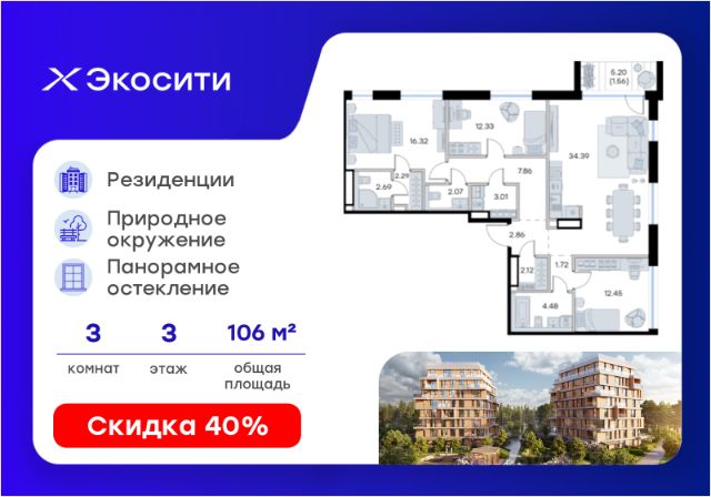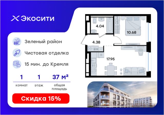Продается 1-комн. квартира на 1-м этаже в строящемся проекте Экосити. Общая площадь лота составляет 47,43 кв. м, из которых 15,89 кв. м отведено под жилую и 13,81 кв. м под кухонную зону. Номер квартиры - 128 Преимущества квартиры в Урбан-квартале: • Квартира с полностью чистовой отделкой. В комнатах и коридоре: - натяжной потолок, - стены оклеены обоями под покраску, - полы: ламинат, плинтусы и напольная плитки - установлены межкомнатные двери и подоконники. В санузлах: - на стенах - керамогранитная плитка и/или окраска водостойкой краской - на полу - керамогранитная плитка; - натяжной потолок - сантехника: ванна и экран под ванну/душевой поддон, унитаз, раковины и смесители, монтаж водопровода и канализации - Предусмотрен расширенный пакет системы Умный Дом: бесключевой доступ в подъезд, видеодомофон с функцией Face ID, видеонаблюдение, автоматизированный сбор и передача показаний счётчиков; - На территории Урбан-квартала предусмотрено строительство детского сада на 360 мест, школы на 1501 место, детский развивающий центр на 2000 мест. - Рядом с с кварталом Резиденции запланировано строительство детского сада на 360 мест, школы с детским развивающим центром на 1501 место - На первых этажах домов Урбан-квартала запроектированы коммерческие помещения - предусмотрены места для супермаркетов, бытовых услуг, кафе. - Собственный комьюнити-центр для жителей Урбан-квартала - Клуб Резидентов для жителей квартала Резиденции - бульвар "Река между камней" с плейхабом для детей, амфитеатром, спортивными зонами, аллеей достижений. Всем посетителям будет доступен иммерсивный маршрут и AR-игры. - Тайная тропа вдоль которой расположатся зоны тихого отдыха, йоги и медитаций - 2 смотровые площадки - Снейк-ран - Круговой спортивный маршрут - Специальные зоны для выгула собак - В Урбан-квартале предусмотрено строительство 2 многоэтажных паркингов на 300 и 360 машиномест. Всем жителям проекта доступен и привычный плоскостной паркинг вокруг территории проекта с возможностью в приложении дома получить информацию о наличии парковочных мест. - В квартале Резиденции предусмотрен подземный паркинг на 260 машиномест Экосити — это совершенство города в первозданной природе. Наполненный возможностями квартал, в котором вы не выбираете между городом или природой, семьей или работой, отдыхом или спортом, — вы берете всё сразу. Каждая семья, каким бы составом она ни жила, найдет для себя идеальное пространство. Планировочные решения разнообразны, также как и возможности отделки от черновой до полностью с ремонтом. Здесь запроектированы квартиры с просторной кухней-гостиной, чтобы семья могла комфортно проводить время вместе. Квартиры сдаются с современной качественной отделкой, что позволяет после сдачи дома сразу начать жить, избежав долгих самостоятельных ремонтов. Цветовые решения и стиль отделки можно выбрать при покупке квартиры. Резиденции сдаются в черновой отделке, вы могли реализовать ваши самые смелые дизайнерские решения. Каждая резиденция это баз