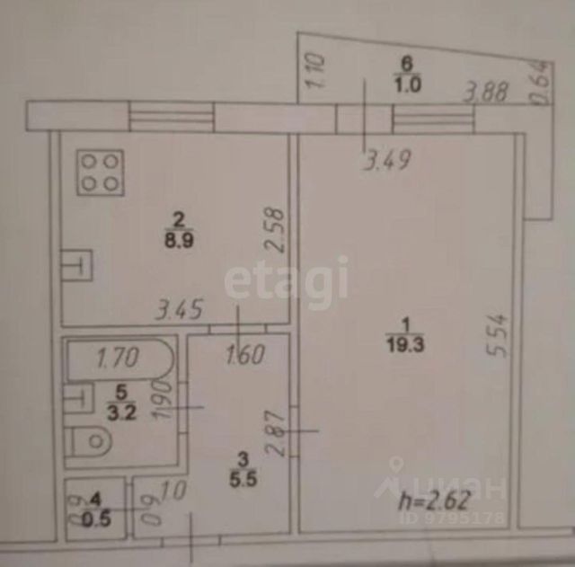 Площадь: с балконом 38,4/37,4 м² по выписке из ЕГРН