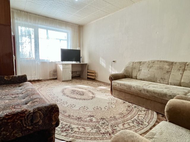 - просторная комната 19,3 м² с выходом на балкон, есть вся необходимая мебель и кровать
