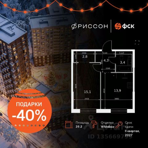 Прямая продажа от застройщика! Клубный дом бизнес-класса в самом сердце Казани, на улице Даурской. Продаётся 1-к квартира номер 60 общей площадью 39.5 кв.м. на 11-м этаже 20 этажного здания. Отделка Whitebox. Цена с учётом скидки. Особенности квартиры: - Мастер-зона с гардеробной. Просторное место для отдыха и удобного хранения вещей. - Просторная спальня, в которой можно разместить большую кровать. - Линейная планировка - максимальная функциональность и удобство. - Просторная кухня - место для семейных ужинов и кулинарных экспериментов. - Гардеробная - удобство для хранения и организации вещей. - Ниша под шкаф - компактное и удобное место для вещей. Квартира с предчистовой отделкой (White box). Вам не придется заниматься черновыми и трудоёмкими работы, а чистовую отделку и дизайн - сделайте на свой вкус. Информация о комплексе: "Фриссон" - клубный дом бизнес-класса в самом сердце Казани, на улице Даурской. Лейтмотивом проекта стала музыка - её сила, гармония и способность возвышать нас над повседневностью. Подобно нотам, рождающим бесконечное множество мелодий, квартиры в "Фриссоне" создают пространство для творчества, вдохновения и личного ритма жизни. Архитектура клубного дома словно симфония: переменная высота корпусов, выразительные фасады и динамика линий создают ощущение лёгкости и движения. Свет свободно проникает во внутренние дворы и квартиры, наполняя пространство теплом и гармонией. Здесь каждый день звучит по-своему - в унисон с вашим настроением. Транспортная доступность: - 5 мин. на машине до Метро Аметьево - 8 мин. на машине до ТЦ "KazanMall" - 3 мин. пешком до школы - 1 мин. пешком до Детского сада "Фриссон" - 3 мин. до поликлиники Внутренняя инфраструктура: Гармония уюта, ритма и комфорта. Для маленьких жителей комплекса предусмотрены детские площадки с элементами музыкальной тематики, где можно играть, исследовать мир звуков и развивать творческое мышление. На территории "Фриссона" разместится двухэтажный детский сад на 80 мест - современное и безопасное пространство, где дети всегда рядом с родителями. Закрытая территория, концепция "двор без машин" и круглосуточное видеонаблюдение обеспечивают спокойствие и безопасность жителей. В каждом подъезде предусмотрены колясочные, а во дворе - велопарковки, чтобы коляски, велосипеды и самокаты всегда были под рукой. На первых этажах корпусов расположатся кафе и магазины, делающие жизнь максимально удобной. Здесь всё продумано для того, чтобы дом стал местом вдохновения, а двор - пространством, наполненным радостью и энергией жизни.