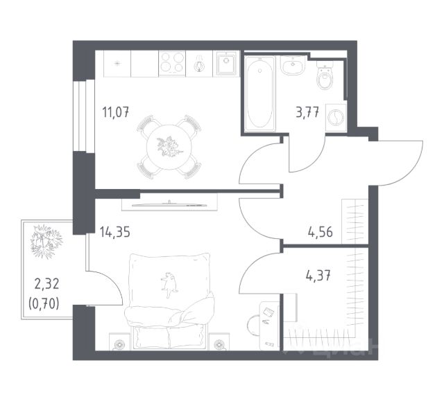 Продаётся 1-комн. квартира площадью 33,7 кв.м на 11 этаже 16 этажного дома (Корпус 3, Секция 1) проекта ПИК Сиберово. Светлый просторный подъезд на уровне земли, функциональная планировка, большие окна, предчистовая отделка. "Сиберово" - жилой квартал на улице Журналистов с парками в каждом дворе, школой и двумя детскими садами. До центра Казани - 15 минут пути на машине. Переменная высота домов от 7 до 26 этажей создаёт ощущение простора, а солнечному свету позволяет беспрепятственно проникать во дворы и квартиры. С верхних этажей откроется панорамный вид на реку Казанку, "Ак Барс Арену" и центр семьи "Казан". Жилой квартал отметили на форуме "Казаныш", где награждают лучшие архитектурные проекты Казани. В 2023 году проект оказался в двух номинациях: "Лучшее благоустройство территорий" и "Лучшая архитектурно-градостроительная подсветка". В "Сиберово" будет всё необходимое для комфортной жизни: на первых этажах разместятся магазины, кафе и полезные сервисы. Внутри жилого квартала запланировано строительство школы и двух детских садов. Для удобства жителей будут подземные паркинги в каждом доме, четыре наземных многоуровневых паркинга, индивидуальные кладовые и колясочные. В каждом дворе будет парк - тихое приватное пространство для жителей, где можно расслабиться после рабочего дня. Здесь красиво и уютно в любое время года. Через весь квартал протянется широкий пешеходный бульвар с велодорожками, велопарковками, зонами для отдыха, детскими и спортивными площадками. Входы в подъезды в "Сиберово" сделаны на уровне земли: по территории квартала удобно перемещаться и пешком, и на самокате, и с коляской. Первые этажи просторные и светлые: панорамное остекление пропускает много естественного света, а высота потолков доходит до пяти метров. Все квартиры сдаются в предчистовой отделке: с ровными белыми стенами, готовой гидроизоляцией, стяжкой полов, разводкой систем отопления, с окнами с надёжным пластиковым профилем. Вам останется только выбрать цвета и материалы для косметического ремонта, чтобы оформить квартиру на свой вкус. Вокруг "Сиберово" развитый район города: рядом детские сады, школы, колледж, поликлиники и торговые центры. До центра отсюда всего 15 минут на машине. Артикул 1025155 (Застройщик ООО "СЗ МТ ДЕВЕЛОПМЕНТ")