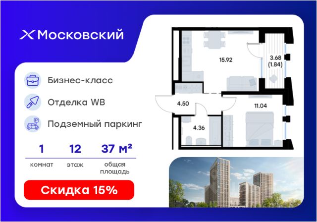 Продается 1-комн. квартира на 12-м этаже в квартале бизнес-класса Московский. Общая площадь лота составляет 36,73 кв. м, из которых 11,34 кв. м отведено под жилую и 14,64 кв. м под кухонную зону. Номер квартиры - 161 Московский это идеальное сочетание динамики мегаполиса и камерности района, где каждое утро начинается легко, а каждый вечер наполнен ощущением дома Преимущества квартиры: евро-двухкомнатная квартира; высокий этаж; остекленная лоджия; вид во двор. Преимущества, которые изменят вашу жизнь: • Собственная инфраструктура: Всё для комфорта и досуга, не выходя за территорию проекта • Безопасность 24/7: Закрытая территория, видеонаблюдение, система "Умный дом" • Безбарьерная среда: Забота о каждом жителе, независимо от возраста • Футуристичные лобби: Эстетика и комфорт с первых шагов в вашем доме. • Колясочные в каждой секции: Больше пространства в ваших квартирах • Квартиры в отделке White Box: Готовый холст для реализации дизайнерских идей. • Благоустройство в стиле лесопарка: эко-пространство, где природа становится частью повседневной жизни. Московский это проект бизнес-класса для тех, кто живёт в ритме большого города, но ждёт безмятежности у себя дома. Здесь всё важное происходит рядом с вами: работа, встречи, спортивные и культурные активности, прогулки, образование и обучение. Здесь вы ощутите, что вы наконец-то дома — в доме, которого давно ждали. Узнайте подробности в отделе продаж!
