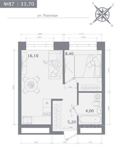 Комфортная 1-комнатная квартира с просторной евро-кухней площадью 26, 7 кв.м. Удачное зонирование позволяет разделить гостевое и кухонное пространство, скрыв рабочие процессы.