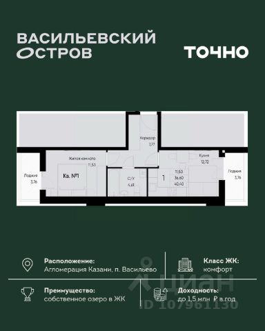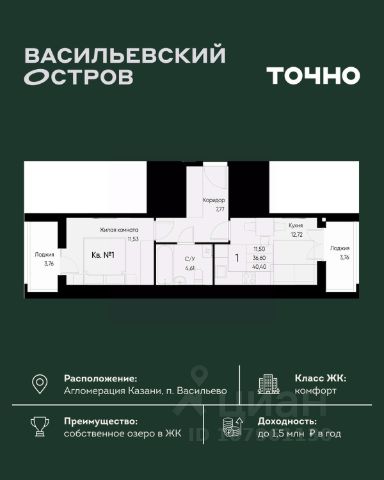Продаётся 1-комнатная квартира в строящемся доме (Дом 1), срок сдачи: I-кв. 2027, общей площадью 39.8 кв.м., на 15 этаже. Новый жилой комплекс "Акварели на ВЫСОТЕ" от застройщика "Шаги к успеху" расположен по адресу: Республика Татарстан, Зеленодольск, микрорайон Мирный