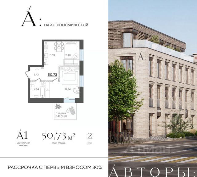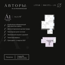 Вы можете приобрести эту квартиру в рассрочку с первоначальным взносом 30% и ежемесячным платежом 50 000 рублей. Подробнее - звоните! Продается 1-к квартира 3 в клубном доме "Авторы на Астрономической" в центре Казани, в шаге от канала Булак. Квартира на 2 этаже площадью 44,27 м², высотой потолков 3 м. Квартира сдается в свободной планировке, предоставляя полную свободу для ваших предпочтений в дизайне и возможность подстроить пространство под ваши жизненные ценности. Срок сдачи дома — 2-й квартал 2027 года. В клубном доме всего 25 квартир от 31м² до 117м². Возможно приобретение с полной оплатой (при полной оплате скидка 8%), в рассрочку с первым взносом 20%, 30% или 50% ( при приобретении в рассрочку с первым взносом 50% возможна скидка до 5% от стоимости), а также оформление ипотеки. Клубный дом "Авторы на Астрономической" в историческом центре Казани, в пешей доступности от Кремля и главных достопримечательностей города. Вы находитесь в самом центре: можно выйти из дома и быстро добраться в любую часть города, даже в час пик. В соответствии с современными стандартами бизнес-класса "Авторы" предлагают особые решения для вашего комфорта: • Тактильная натуральная архитектура из ригельного кирпича ручной формовки. • Закрытая территория с круглосуточным видеонаблюдением. • Трехсекционный двор с высокорослыми растениями и озеленением по философии Хаяо Миядзаки. • Подземный паркинг с умным въездом (распознавание госномеров). • Астро-лобби с круглосуточным консьержем, зонами отдыха и дизайнерской отделкой из натуральных коллекционных материалов для создания атмосферы высокого класса. Особенным пространством в доме станет арт-зал с проекцией 360, которая предоставляет жителям дома возможность быть свидетелями произведений диджитал-художников, а также организовывать просмотры фильмов в формате приватного кинотеатра не выходя из дома. Компания "Авторы" — девелопер на рынке высококлассной недвижимости Казани. Как самостоятельный застройщик компания работает с 2022 года. В портфеле компании один сданный проект, пять клубных домов на этапе строительства и еще три в разработке. Компания входит в ТОП-5 застройщиков ЕРЗ** РТ по потребительским качествам. Сейчас компания ведет строительство проектов на ул. Большая, ул. Петербургская, ул. Годовикова и ул. Астрономическая.