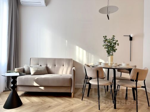 Комфортная и продуманная 1-комнатная квартира с евро-кухней. Удачное зонирование позволяет разделить гостевое и кухонное пространство, скрыв рабочие процессы.