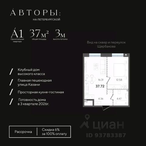 Продается 1-комнатная квартира 6 площадью 48,76 кв.м на 2 этаже проекта "Дом на Исхаки" от "Ак Барс Дом". Купить квартиру можно в ипотеку со ставкой от 4,5%. "Дом на Исхаки" новый жилой комплекс бизнес-класса в историческом центре Казани. Для тех, кто хочет жить в сердце мегаполиса, и при этом сохранить атмосферу приватности. В доме всего 56 квартир. ЖК расположен недалеко от Кремля в окружении необходимой инфраструктуры: в пешей доступности бизнес-центры, Академический лицей им. Лобачевского и другие школы, федеральные университеты, детские сады, Большой драматический театр, ЦУМ, ТРК "Кольцо", спортивные и медицинские центры. Проект "Дом на Исхаки" это премиальный комфорт. Уютный двор с детской площадкой и возможностями для спокойного отдыха, подземный паркинг с современной системой охраны и удобным заездом по считыванию номеров. Эффектная входная группа впечатляет: художественная подсветка фасадов, панорамное остекление, лаунж-зоны с мягкими диванами, система антиобледенения при входе. Вместительная колясочная и гостевой санузел в холле. В проекте высокие потолки до 3 м и до 4,4 м на мансардном этаже, просторные видовые террасы. Увеличенные окна и стекла с нанонапылением повышают шумоизоляцию, делают жилое пространство светлее и теплее, помогают сократить расходы на отопление. Комфортная и продуманная 1-комнатная квартира с евро-кухней. Удачное зонирование позволяет разделить гостевое и кухонное пространство, скрыв рабочие процессы. В проекте отдельная спальная комната и просторная входная зона, где можно не только разместить шкаф-купе и удобные придверные пуфы, но и воплотить любые дизайнерские задумки. Видеонаблюдение по периметру дома, в лифтах, в подъезде и на парковке. Система IP-домофонии с функцией Face-ID. В квартиры установлены стильные вызывные панели со встроенной камерой. Через приложение вы можете наблюдать, что происходит перед дверью квартиры и удаленно открывать дверь в подъезде своим гостям. Мы сделали все, чтобы придать Вашей мечте форму дома. Дом там, где мы.