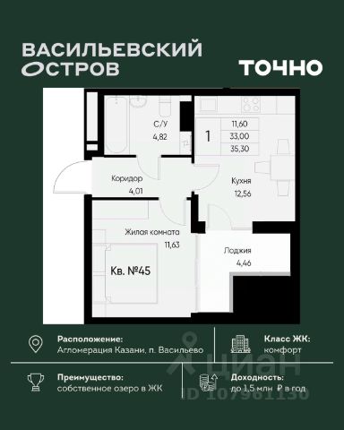 КВАРТИРА: не угловая, просторная, с высокими потолками, светлая, большой квадратный зал (19.2 кв.м.), уютная спальня (12.6 кв.м.), балкон, просторная квадратная кухня (11.6 кв.м.) с двумя окнами, две кладовки, раздельный санузел. Пластиковые окна, счётчики.