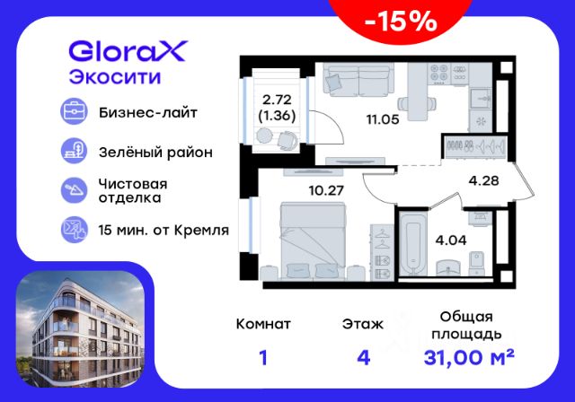 Продается 1-комн. квартира на 4-м этаже в строящемся проекте премиум-класса GloraX Premium Экосити. Общая площадь лота составляет 38,80 кв. м, из которых 12,27 кв. м отведено под жилую и 15,80 кв. м под кухонную зону. Номер квартиры - 21 GloraX Premium Экосити это роскошь, вдохновленная природой. Преимущества, которые изменят вашу жизнь: • Собственная премиальная инфраструктура: Всё для комфорта и досуга, не выходя за территорию комплекса • Безопасность 24/7: Закрытая территория, видеонаблюдение, система "Умный дом" • Безбарьерная среда: Забота о каждом жителе, независимо от возраста и физических возможностей. • Изысканные дизайнерские холлы: Эстетика и комфорт с первых шагов в вашем доме. • Удобные колясочные в каждой секции: Больше пространства в вашей резиденции. • Квартиры в черновой отделке: Индивидуальные пространства для комфортной жизни. • Вдохновляющее благоустройство: Вдохнолвленные хвойным окружением: пешеходные и спортивные маршруты, детские площадки для разных возрастов, площадки для отдыха взрослых и зеленые кабинеты, озеро с плейхабом, теннисная площадка, площадка для мини-гольфа и многое другое всё для активной и насыщенной жизни. • Забота о будущем: Современные детский сад и школа с центром допольнительного образования рядом с кварталом. GloraX Premium Экосити это масштабный проект премиум-класса, созданный для тех, кто ценит комфорт, безопасность и качество жизни. Расположенный в Аракчино Кировского района, он гармонично сочетает в себе близость к природе и развитую инфраструктуру. Здесь каждый элемент создан для вашего удобства: от функциональных планировок до благоустроенной территории. GloraX Premium Экосити это пространство, где вы сможете наслаждаться каждым днем, зная, что сделали правильный выбор. GloraX Premium Экосити - это роскошь, вдохновленная природой. Цена указана при 100% оплате или стандартной ипотеке. Узнайте подробности в Отделе продаж.