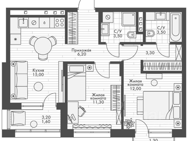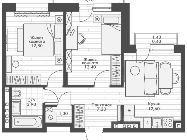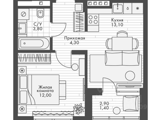 • ✅ Минимальная площадь: 34,4 м²