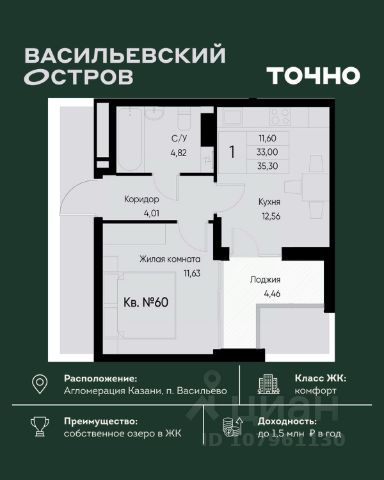 Предлагает Вашему вниманию 1-комнатную квартиру в городе Казань по адресу: ул. Гавриила Державина, д. 3, корпус 3 (Кировский район),