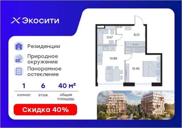 Продается 1-комн. квартира на 6-м этаже в строящемся проекте Экосити. Общая площадь лота составляет 30,80 кв. м, из которых 10,39 кв. м отведено под жилую и 11,03 кв. м под кухонную зону. Номер квартиры - 289 Преимущества квартиры в Урбан-квартале: • Квартира с полностью чистовой отделкой. В комнатах и коридоре: - натяжной потолок, - стены оклеены обоями под покраску, - полы: ламинат, плинтусы и напольная плитки - установлены межкомнатные двери и подоконники. В санузлах: - на стенах - керамогранитная плитка и/или окраска водостойкой краской - на полу - керамогранитная плитка; - натяжной потолок - сантехника: ванна и экран под ванну/душевой поддон, унитаз, раковины и смесители, монтаж водопровода и канализации - Предусмотрен расширенный пакет системы Умный Дом: бесключевой доступ в подъезд, видеодомофон с функцией Face ID, видеонаблюдение, автоматизированный сбор и передача показаний счётчиков; - На территории Урбан-квартала предусмотрено строительство детского сада на 360 мест, школы на 1501 место, детский развивающий центр на 2000 мест. - Рядом с с кварталом Резиденции запланировано строительство детского сада на 360 мест, школы с детским развивающим центром на 1501 место - На первых этажах домов Урбан-квартала запроектированы коммерческие помещения - предусмотрены места для супермаркетов, бытовых услуг, кафе. - Собственный комьюнити-центр для жителей Урбан-квартала - Клуб Резидентов для жителей квартала Резиденции - бульвар "Река между камней" с плейхабом для детей, амфитеатром, спортивными зонами, аллеей достижений. Всем посетителям будет доступен иммерсивный маршрут и AR-игры. - Тайная тропа вдоль которой расположатся зоны тихого отдыха, йоги и медитаций - 2 смотровые площадки - Снейк-ран - Круговой спортивный маршрут - Специальные зоны для выгула собак - В Урбан-квартале предусмотрено строительство 2 многоэтажных паркингов на 300 и 360 машиномест. Всем жителям проекта доступен и привычный плоскостной паркинг вокруг территории проекта с возможностью в приложении дома получить информацию о наличии парковочных мест. - В квартале Резиденции предусмотрен подземный паркинг на 260 машиномест Экосити — это совершенство города в первозданной природе. Наполненный возможностями квартал, в котором вы не выбираете между городом или природой, семьей или работой, отдыхом или спортом, — вы берете всё сразу. Каждая семья, каким бы составом она ни жила, найдет для себя идеальное пространство. Планировочные решения разнообразны, также как и возможности отделки от черновой до полностью с ремонтом. Здесь запроектированы квартиры с просторной кухней-гостиной, чтобы семья могла комфортно проводить время вместе. Квартиры сдаются с современной качественной отделкой, что позволяет после сдачи дома сразу начать жить, избежав долгих самостоятельных ремонтов. Цветовые решения и стиль отделки можно выбрать при покупке квартиры. Резиденции сдаются в черновой отделке, вы могли реализовать ваши самые смелые дизайнерские решения. Каждая резиденция это баз