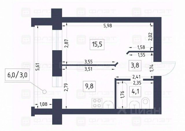 - вместительная ванная комната 4,1 кв.м.