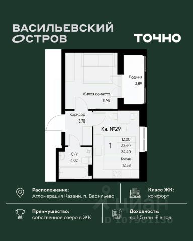 • ✅ Минимальная площадь: 34,4 м²