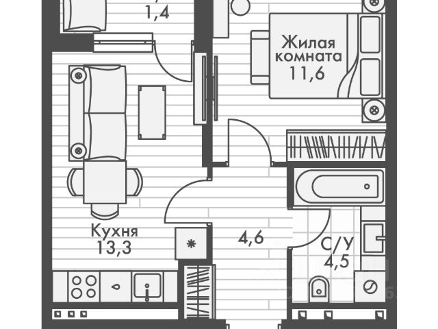 — Общая площадь - 31,3 кв.м, без учета лоджии.