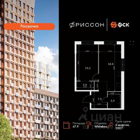 Продаётся 1-комн. квартира площадью 44,7 кв.м на 9 этаже 17 этажного дома (Корпус 9, Секция 1) проекта ПИК Нокса парк. Светлый просторный подъезд на уровне земли, функциональная планировка, большие окна, предчистовая отделка.