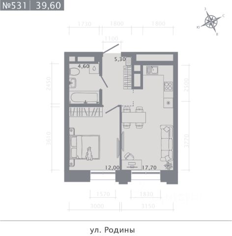 Продаётся 1-комнатная квартира в строящемся доме (Корпус 2), срок сдачи: I-кв. 2029, общей площадью 39.3 кв.м., на 18 этаже.