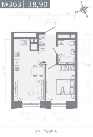 Продаётся 1-комнатная квартира в строящемся доме (Корпус 1), срок сдачи: II-кв. 2028, общей площадью 39.6 кв.м., на 18 этаже.
