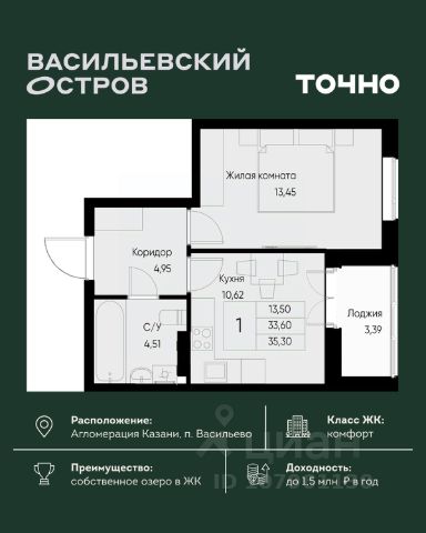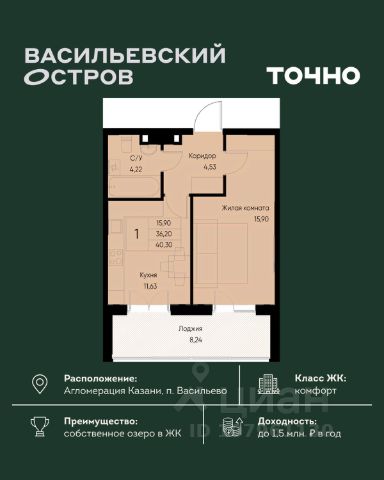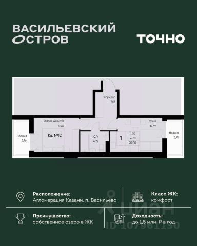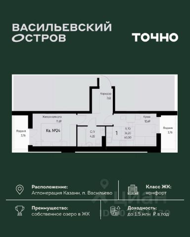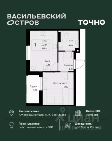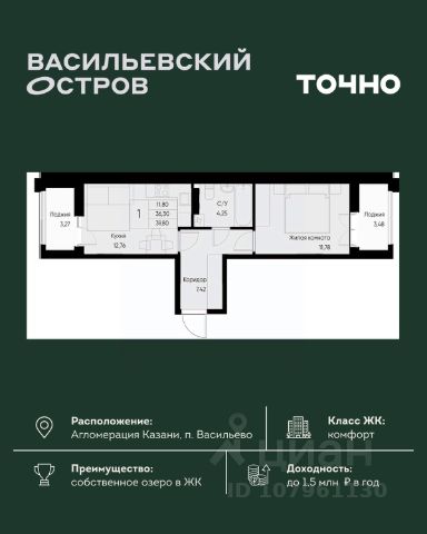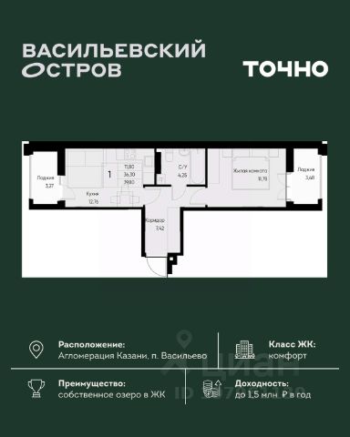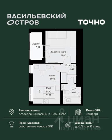 • ✓ В базе Циан 76 1-комнатных квартир в кирпично-монолитном доме в муниципальном образовании Васильево республики Татарстан