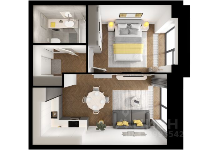 Общая площадь квартиры составляет 35 кв.м., из которых 19,6 кв.м. отведено под жилую комнату, а уютная кухня площадью 7,4 кв.м. станет местом для ваших кулинарных шедевров.