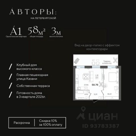 Продается 1-комнатная квартира 26 площадью 49,51 кв.м на 5 этаже проекта "Дом на Исхаки" от "Ак Барс Дом". Купить квартиру можно в ипотеку со ставкой от 4,5%.