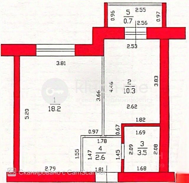Общая площадь 40,5 кв.м