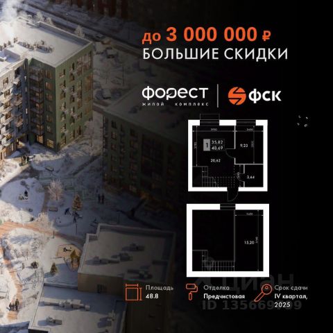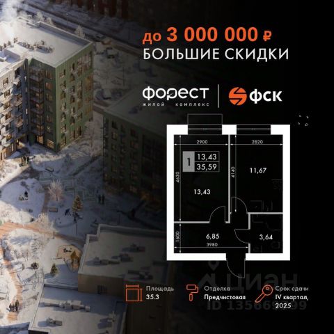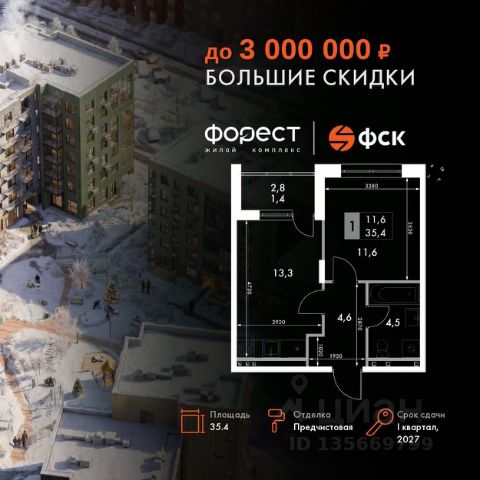 Прямая продажа от застройщика! Корпус 1.1 сдан! Жилой Комплекс комфорт-класса. Продаётся 1-к квартира номер 63 общей площадью 27.7 кв.м. на 6-м этаже 6 этажного здания. Отделка Whitebox. Цена с учётом скидки. Особенности квартиры: - Линейная планировка - максимальная функциональность и удобство. - Евроформат - просторное и удобное жилье с отличной планировкой. - Балкон - открытое пространство для отдыха. Квартира с предчистовой отделкой (White box). Вам не придется заниматься черновыми и трудоёмкими работы, а чистовую отделку и дизайн - сделайте на свой вкус. Информация о комплексе: "Форест" - жилой комплекс комфорт-класса, созданный для тех, кто ищет гармонию с природой, не отказываясь от городского ритма. Расположенный в окружении леса и реки, он воплощает мечту о загородной жизни со всеми удобствами города. Здесь можно проживать самые тёплые моменты с близкими, дышать свежим хвойным воздухом, встречать утро на собственной террасе или проводить вечера с друзьями под открытым небом. Благоустроенная территория, прогулочные дорожки и зоны отдыха создают атмосферу уюта и гармонии. Поблизости - лес и Волга, куда можно выбраться на прогулку в любое время, не дожидаясь выходных. Благодаря вечнозелёным растениям и продуманному озеленению, дворы остаются зелёными круглый год. Транспортная доступность: - 4 мин. пушком до автобусной остановки - 5 мин. на машине до школы Внутренняя инфраструктура: Продуманное пространство для жизни, отдыха и развития. На территории комплекса работает собственный детский сад - современное и безопасное пространство, где дети всегда рядом с родителями. Во дворе установлены игровые комплексы для активных прогулок и развития малышей на свежем воздухе. Жителям доступны кафе и магазины, площадки для прогулок с питомцами, зоны для пикников и барбекю. Для любителей активного образа жизни предусмотрены велодорожки, воркаут-зоны и тропы для хайкинга, а в шаговой доступности находятся планетарий и глэмпинг. Просторный двор без машин и закрытая территория с системой контроля доступа обеспечивают высокий уровень безопасности и приватности. Здесь можно по-настоящему расслабиться и чувствовать себя дома - в окружении природы, комфорта и заботы о каждом дне.