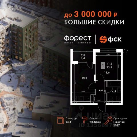 Прямая продажа от застройщика! Корпус 1.1 сдан! Жилой Комплекс комфорт-класса. Продаётся 1-к квартира номер 83 общей площадью 46.9 кв.м. на 4-м этаже 4 этажного здания. Отделка Whitebox. Цена с учётом скидки. Особенности квартиры: - Линейная планировка - максимальная функциональность и удобство. - Увеличенная высота потолков - ощущение простора и легкости. - Второй свет - уникальная атмосфера с открытыми пространствами. - Квартира с антресолью - стильное и необычное решение для вашего дома. Квартира с предчистовой отделкой (White box). Вам не придется заниматься черновыми и трудоёмкими работы, а чистовую отделку и дизайн - сделайте на свой вкус. Информация о комплексе: "Форест" - жилой комплекс комфорт-класса, созданный для тех, кто ищет гармонию с природой, не отказываясь от городского ритма. Расположенный в окружении леса и реки, он воплощает мечту о загородной жизни со всеми удобствами города. Здесь можно проживать самые тёплые моменты с близкими, дышать свежим хвойным воздухом, встречать утро на собственной террасе или проводить вечера с друзьями под открытым небом. Благоустроенная территория, прогулочные дорожки и зоны отдыха создают атмосферу уюта и гармонии. Поблизости - лес и Волга, куда можно выбраться на прогулку в любое время, не дожидаясь выходных. Благодаря вечнозелёным растениям и продуманному озеленению, дворы остаются зелёными круглый год. Транспортная доступность: - 4 мин. пушком до автобусной остановки - 5 мин. на машине до школы Внутренняя инфраструктура: Продуманное пространство для жизни, отдыха и развития. На территории комплекса работает собственный детский сад - современное и безопасное пространство, где дети всегда рядом с родителями. Во дворе установлены игровые комплексы для активных прогулок и развития малышей на свежем воздухе. Жителям доступны кафе и магазины, площадки для прогулок с питомцами, зоны для пикников и барбекю. Для любителей активного образа жизни предусмотрены велодорожки, воркаут-зоны и тропы для хайкинга, а в шаговой доступности находятся планетарий и глэмпинг. Просторный двор без машин и закрытая территория с системой контроля доступа обеспечивают высокий уровень безопасности и приватности. Здесь можно по-настоящему расслабиться и чувствовать себя дома - в окружении природы, комфорта и заботы о каждом дне.