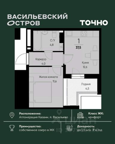 Восхитительную 1-комнатную квартиру на среднем этаже в одном из самых новых домов микрорайона Юдино, Кировский район г. Казань.