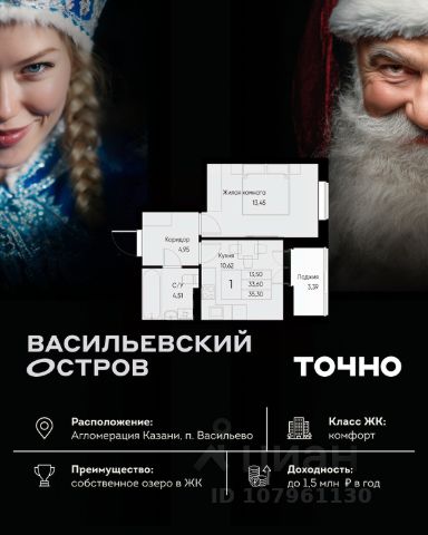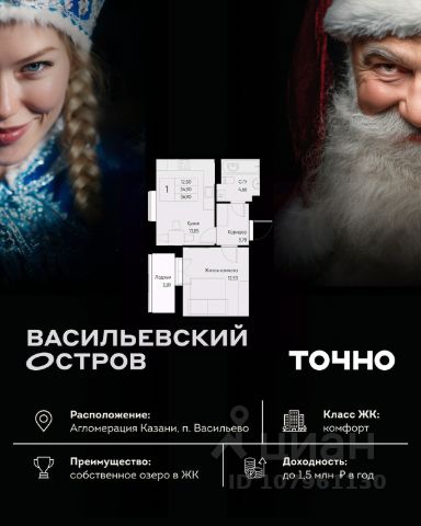 • ✓ В базе Циан 8 1-комнатных квартир на последнем этаже в поселке городского типа Васильево республики Татарстан