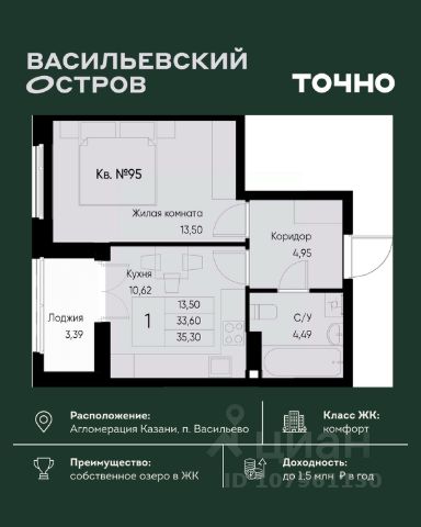 • ✓ В базе Циан 6 1-комнатных квартир на последнем этаже в поселке городского типа Васильево республики Татарстан