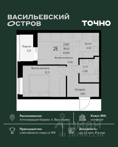 ЖК "Васильевский остров" — масштабный проект ТОЧНО в Казанской агломерации. Просторная территория 88 Га спроектирована для комфортной жизни: озеро с набережной и пляжем, каток, зелёные маршруты. В проекте комплекса — школа на 1 224 места, 2 детских сада на 680 мест, детская и взрослая поликлиники, фитнес-центр с бассейном, термальный комплекс, фермерский рынок, магазины, кафе и рестораны.