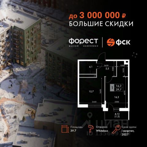 Прямая продажа от застройщика! Жилой Комплекс комфорт-класса. Продаётся 1-к квартира номер 44 общей площадью 44.1 кв.м. на 4-м этаже 4 этажного здания. Отделка Whitebox. Цена с учётом скидки. Особенности квартиры: - Линейная планировка - максимальная функциональность и удобство. - Увеличенная высота потолков - ощущение простора и легкости. - Второй свет - уникальная атмосфера с открытыми пространствами. - Квартира с антресолью - стильное и необычное решение для вашего дома. Квартира с предчистовой отделкой (White box). Вам не придется заниматься черновыми и трудоёмкими работы, а чистовую отделку и дизайн - сделайте на свой вкус. Информация о комплексе: "Форест" - жилой комплекс комфорт-класса, созданный для тех, кто ищет гармонию с природой, не отказываясь от городского ритма. Расположенный в окружении леса и реки, он воплощает мечту о загородной жизни со всеми удобствами города. Здесь можно проживать самые тёплые моменты с близкими, дышать свежим хвойным воздухом, встречать утро на собственной террасе или проводить вечера с друзьями под открытым небом. Благоустроенная территория, прогулочные дорожки и зоны отдыха создают атмосферу уюта и гармонии. Поблизости - лес и Волга, куда можно выбраться на прогулку в любое время, не дожидаясь выходных. Благодаря вечнозелёным растениям и продуманному озеленению, дворы остаются зелёными круглый год. Транспортная доступность: - 4 мин. пушком до автобусной остановки - 5 мин. на машине до школы Внутренняя инфраструктура: Продуманное пространство для жизни, отдыха и развития. На территории комплекса работает собственный детский сад - современное и безопасное пространство, где дети всегда рядом с родителями. Во дворе установлены игровые комплексы для активных прогулок и развития малышей на свежем воздухе. Жителям доступны кафе и магазины, собственный SPA-центр, площадки для прогулок с питомцами, зоны для пикников и барбекю. Для любителей активного образа жизни предусмотрены велодорожки, воркаут-зоны и тропы для хайкинга, а в шаговой доступности находятся планетарий и глэмпинг. Просторный двор без машин и закрытая территория с системой контроля доступа обеспечивают высокий уровень безопасности и приватности. Здесь можно по-настоящему расслабиться и чувствовать себя дома - в окружении природы, комфорта и заботы о каждом дне.