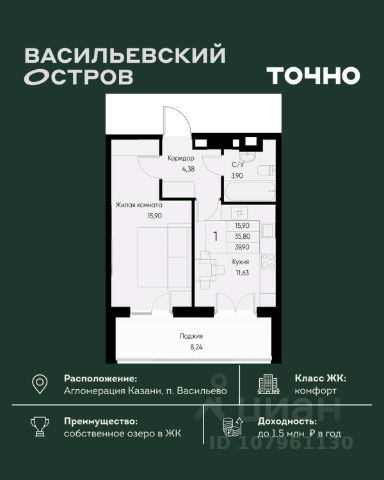 Прямая продажа от застройщика! Корпус 1.1 сдан! Жилой Комплекс комфорт-класса. Продаётся 1-к квартира номер 31 общей площадью 34.3 кв.м. на 4-м этаже 5 этажного здания. Предчистовая отделка. Цена с учётом скидки. Особенности квартиры: - Линейная планировка - максимальная функциональность и удобство. - Лоджия - уютное место для отдыха и тишины. Квартира с предчистовой отделкой. Вам не придется заниматься черновыми и трудоёмкими работы, а чистовую отделку и дизайн - сделайте на свой вкус. Информация о комплексе: "Форест" - жилой комплекс комфорт-класса, созданный для тех, кто ищет гармонию с природой, не отказываясь от городского ритма. Расположенный в окружении леса и реки, он воплощает мечту о загородной жизни со всеми удобствами города. Здесь можно проживать самые тёплые моменты с близкими, дышать свежим хвойным воздухом, встречать утро на собственной террасе или проводить вечера с друзьями под открытым небом. Благоустроенная территория, прогулочные дорожки и зоны отдыха создают атмосферу уюта и гармонии. Поблизости - лес и Волга, куда можно выбраться на прогулку в любое время, не дожидаясь выходных. Благодаря вечнозелёным растениям и продуманному озеленению, дворы остаются зелёными круглый год. Транспортная доступность: - 4 мин. пушком до автобусной остановки - 5 мин. на машине до школы Внутренняя инфраструктура: Продуманное пространство для жизни, отдыха и развития. На территории комплекса работает собственный детский сад - современное и безопасное пространство, где дети всегда рядом с родителями. Во дворе установлены игровые комплексы для активных прогулок и развития малышей на свежем воздухе. Жителям доступны кафе и магазины, площадки для прогулок с питомцами, зоны для пикников и барбекю. Для любителей активного образа жизни предусмотрены велодорожки, воркаут-зоны и тропы для хайкинга, а в шаговой доступности находятся планетарий и глэмпинг. Просторный двор без машин и закрытая территория с системой контроля доступа обеспечивают высокий уровень безопасности и приватности. Здесь можно по-настоящему расслабиться и чувствовать себя дома - в окружении природы, комфорта и заботы о каждом дне. Продам 1-комнатную квартиру в новостройке с отделкой в Зеленодольском районе республики Татарстан.