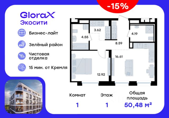 Продается 1-комн. квартира на 3-м этаже в строящемся проекте GloraX Экосити. Общая площадь лота составляет 42,73 кв. м, из которых 11,00 кв. м отведено под жилую и 20,98 кв. м под кухонную зону. Номер квартиры - 327 Преимущества квартиры: • Квартира с полностью чистовой отделкой. В комнатах и коридоре: - натяжной потолок, - стены оклеены обоями под покраску, - полы: ламинат, плинтусы и напольная плитки - установлены межкомнатные двери и подоконники. В санузлах: - на стенах - керамогранитная плитка и/или окраска водостойкой краской - на полу - керамогранитная плитка; - натяжной потолок - сантехника: ванна и экран под ванну/душевой поддон, унитаз, раковины и смесители, монтаж водопровода и канализации - Предусмотрен расширенный пакет системы Умный Дом: бесключевой доступ в подъезд, видеодомофон с функцией Face ID, видеонаблюдение, автоматизированный сбор и передача показаний счётчиков; - Внутренние дворы каждого урбан-блока закрытые, благоустройство по индивидуальному проекту. - На территории квартала предусмотрено строительство детского сада на 360 мест, школы на 1501 место, ДОУ на 2000 мест. - На первых этажах домов запроектированы коммерческие помещения - предусмотрены места для супермаркетов, бытовых услуг, кафе. - Собственный комьюнити-центр для жителей жилого комплекса - бульвар "Река между камней" с плейхабом для детей, амфитеатром, спортивными зонами, аллеей достижений. Всем посетителям будет доступен иммерсивный маршрут и AR-игры. - лесная прогулочная аллея вдоль которой расположатся зоны тихого отдыха, йоги и медитаций - 2 смотровые площадки - специальная зона для выгула собак - В жилом комплексе предусмотрено строительство 2 многоэтажных паркингов на 300 и 360 машиномест. Всем жителям проекта доступен и привычный плоскостной паркинг вокруг территории проекта с возможностью в приложении дома получить информацию о наличии парковочных мест. GloraX Экосити — это совершенство города в первозданной природе. Наполненный возможностями район, в котором вы не выбираете между городом или природой, семьей или работой, отдыхом или спортом, — вы берете всё сразу. Каждая семья, каким бы составом она ни жила, найдет для себя идеальное пространство. Планировочные решения запроектированы с просторной кухней-гостиной, чтобы семья могла комфортно проводить время вместе. В целях безопасности в детских комнатах отсутствуют балконы и лоджии. Квартиры сдаются с современной качественной отделкой, что позволяет после сдачи дома сразу начать жить, избежав долгих самостоятельных ремонтов. Цветовые решения и стиль отделки можно выбрать при покупке квартиры. Цена указана при 100% оплате или стандартной ипотеке. Узнайте подробности в Отделе продаж.