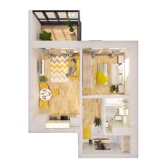 В квартирах выполняется предчистовая отделка с использованием качественных материалов: металлические двери, тепло- и шумоизоляция, энергоэффективные стеклопакеты, скрытая разводка коммуникаций и радиаторы с терморегуляцией.