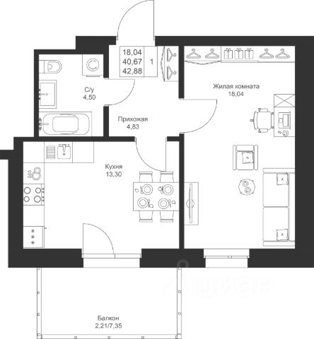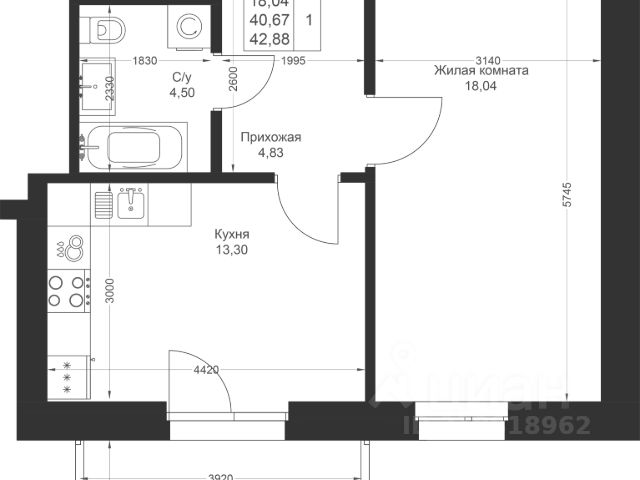 Республика Та 1-комнатная квартира в новостройке рядом с метро Горки.