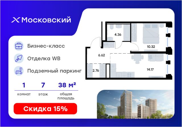 Продается 1-комн. квартира на 7-м этаже в квартале бизнес-класса Московский. Общая площадь лота составляет 30,59 кв. м, из которых 10,63 кв. м отведено под жилую и 14,07 кв. м под кухонную зону. Номер квартиры - 51 Московский это идеальное сочетание динамики мегаполиса и камерности района, где каждое утро начинается легко, а каждый вечер наполнен ощущением дома Преимущества квартиры: евро-двухкомнатная квартира; вид на улицу. Преимущества, которые изменят вашу жизнь: • Собственная инфраструктура: Всё для комфорта и досуга, не выходя за территорию проекта • Безопасность 24/7: Закрытая территория, видеонаблюдение, система "Умный дом" • Безбарьерная среда: Забота о каждом жителе, независимо от возраста • Футуристичные лобби: Эстетика и комфорт с первых шагов в вашем доме. • Колясочные в каждой секции: Больше пространства в ваших квартирах • Квартиры в отделке White Box: Готовый холст для реализации дизайнерских идей. • Благоустройство в стиле лесопарка: эко-пространство, где природа становится частью повседневной жизни. Московский это проект бизнес-класса для тех, кто живёт в ритме большого города, но ждёт безмятежности у себя дома. Здесь всё важное происходит рядом с вами: работа, встречи, спортивные и культурные активности, прогулки, образование и обучение. Здесь вы ощутите, что вы наконец-то дома — в доме, которого давно ждали. Узнайте подробности в отделе продаж! Продам 1-комнатную квартиру в новостройке в районе Московский в городе Казань.
