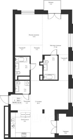 В доме представлен широкий выбор планировок: квартиры с просторными террасами, пентхаусы, мастер-спальнями с личными ванными и гардеробными, угловыми окнами и продуманной геометрией света. Также в проекте — форматы 3-, 4- и 5-комнатных квартир.
