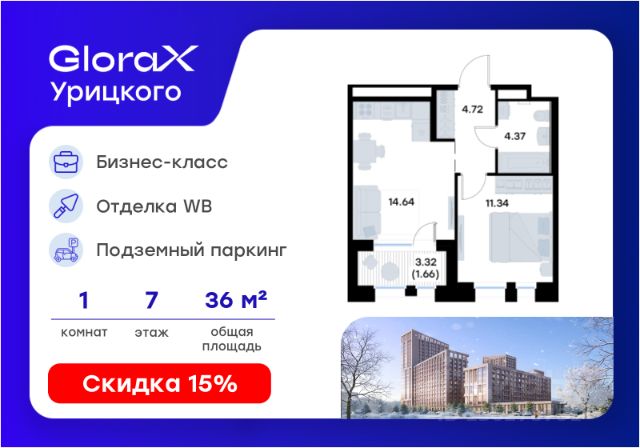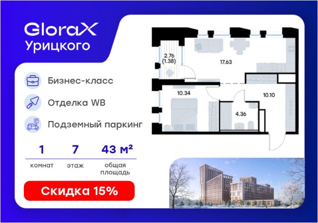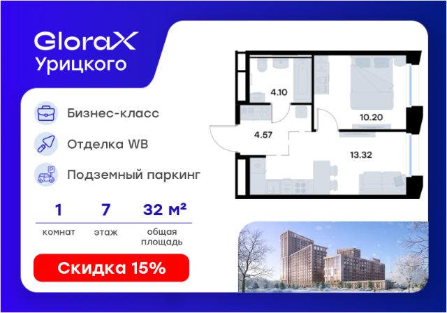 Продаётся 1-комнатная квартира в строящемся доме (Корпус 1), срок сдачи: II-кв. 2028, общей площадью 31.18 кв.м., на 7 этаже. GloraX Урицкого - это новый квартал, рожденный в сердце Московского района Казани, там, где встречаются энергия большого города и тишина старых парков. Проект создает пространство для тех, кто хочет чувствовать себя в центре событий, но при этом возвращаться домой в атмосферу уюта и спокойствия. Главная идея комплекса - гармония города и природы. Здесь архитектура строгих линий сочетается с зеленью двора, напоминающего природный лесопарк, где воплощается многообразие сценариев жизни: от утренней зарядки в зоне воркаута до вечерних прогулок по уютным аллеям и встреч в комьюнити-центре. GloraX Урицкого становится главной доминантой района, новым символом современности, задающим новый уровень качества городской среды. Переменная этажность открывает панорамы города, а динамичные фасады придают ансамблю элегантность и стройность. Этот проект словно открывает новую главу в истории Московского района. 1-комнатная квартира в новостройке в микрорайоне поселок Урицкого в городе Казань.