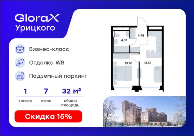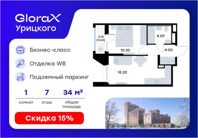 Продаётся 1-комнатная квартира в строящемся доме (Корпус 1), срок сдачи: II-кв. 2028, общей площадью 34.28 кв.м., на 7 этаже. GloraX Урицкого - это новый квартал, рожденный в сердце Московского района Казани, там, где встречаются энергия большого города и тишина старых парков. Проект создает пространство для тех, кто хочет чувствовать себя в центре событий, но при этом возвращаться домой в атмосферу уюта и спокойствия. Главная идея комплекса - гармония города и природы. Здесь архитектура строгих линий сочетается с зеленью двора, напоминающего природный лесопарк, где воплощается многообразие сценариев жизни: от утренней зарядки в зоне воркаута до вечерних прогулок по уютным аллеям и встреч в комьюнити-центре. GloraX Урицкого становится главной доминантой района, новым символом современности, задающим новый уровень качества городской среды. Переменная этажность открывает панорамы города, а динамичные фасады придают ансамблю элегантность и стройность. Этот проект словно открывает новую главу в истории Московского района. 1-комнатная квартира в новостройке в микрорайоне поселок Урицкого в городе Казань.